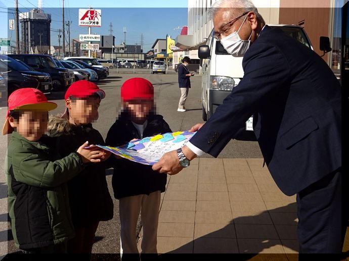 千坂こども園様より、ご返礼の作品が贈呈されました