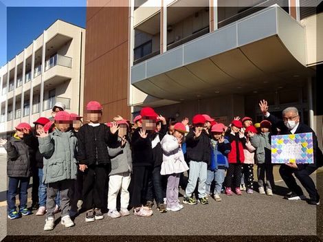 園児の皆さんが声を合わせて、「おじいちゃん、おばあちゃん、いつまでもお元気で」と、お言葉を頂戴し、こちらも元気をいただきました。ありがとうございました。