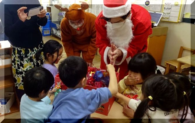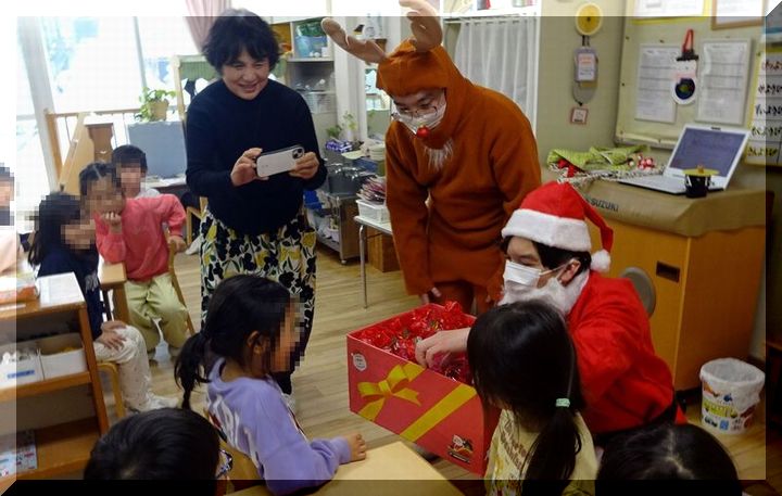 インフルエンザが流行っていることから、園児とご利用者との交流は、今年も控えさせていただいておりますが、そのかわり、うちの職員がサンタとなり、プレゼントをお配りしました。