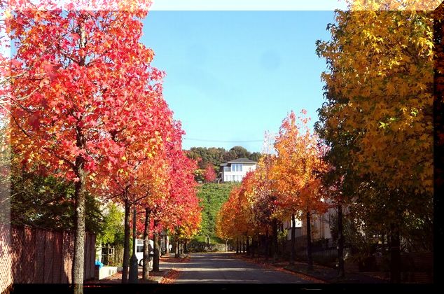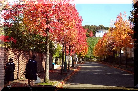 太陽が丘の町並み。この通りは豊かな色の紅葉が混ざり、特に美しかった。