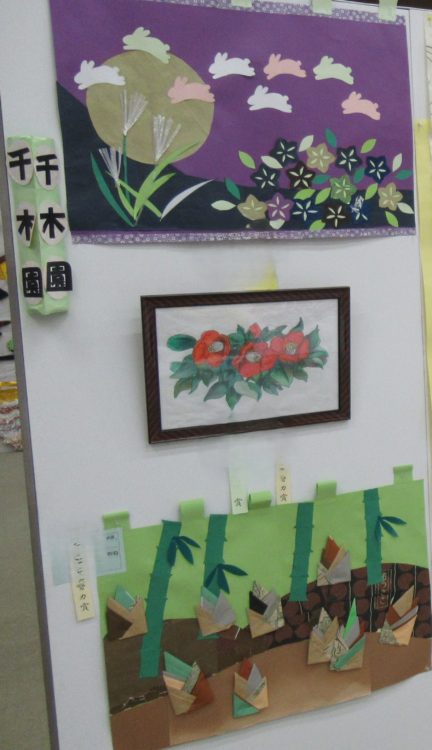 先日、千木園の利用者様お二人が、「第40回 社会福祉施設利用者余技展覧会」に作品を出品されました。日頃から趣味活動に熱心に取り組んでいらっしゃるお二人の作品は、絵画 「藪椿」と 手工芸 「湯涌の筍」「中秋の名月」です。